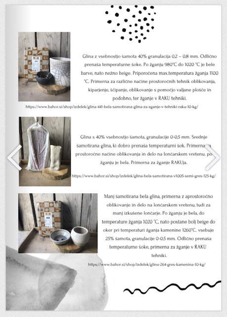 V delovnem zvezku boste našli tudi povezavo do treh vrst gline, ki so ustrezne za izdelavo izdelkov, ki jih namenjate za žganje v tehniki raku.